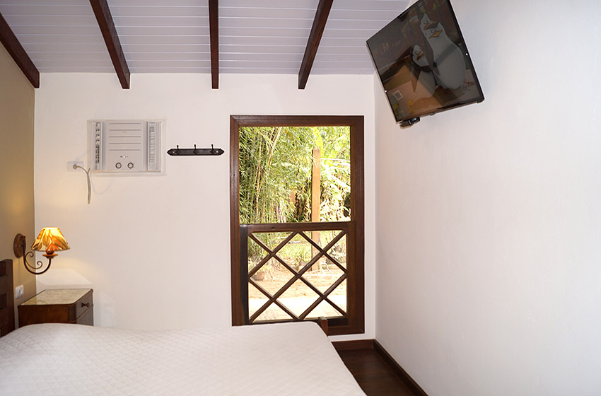 Ar condicionado no quarto - Ar condicionado na saleta - Ventilador de teto - Quarto com cama de Casal - 3 camas de solteiro - Sala com TV por satélite - Quarto com TV LED 40" Sky Livre - Banheiro privativo com box.